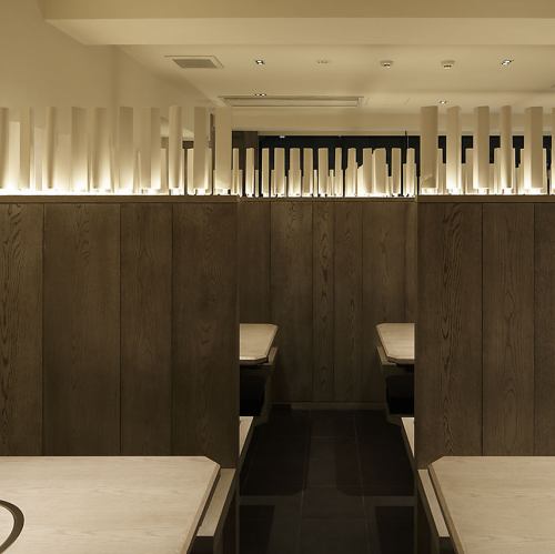 有名デザイナー設計の上質空間。テーブル席はプライバシーに配慮した造りで、ゆったりお過ごしいただけます。